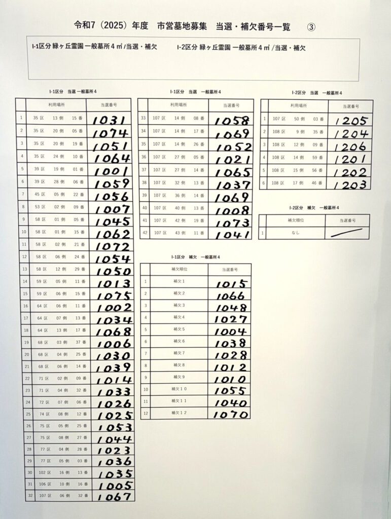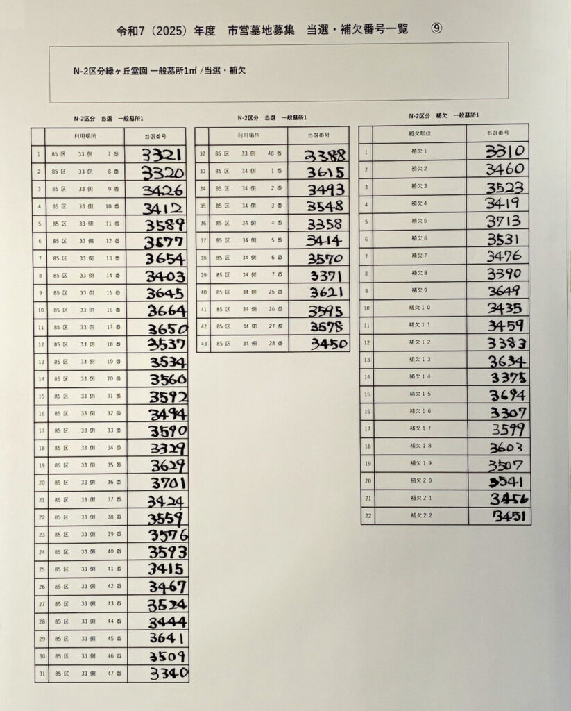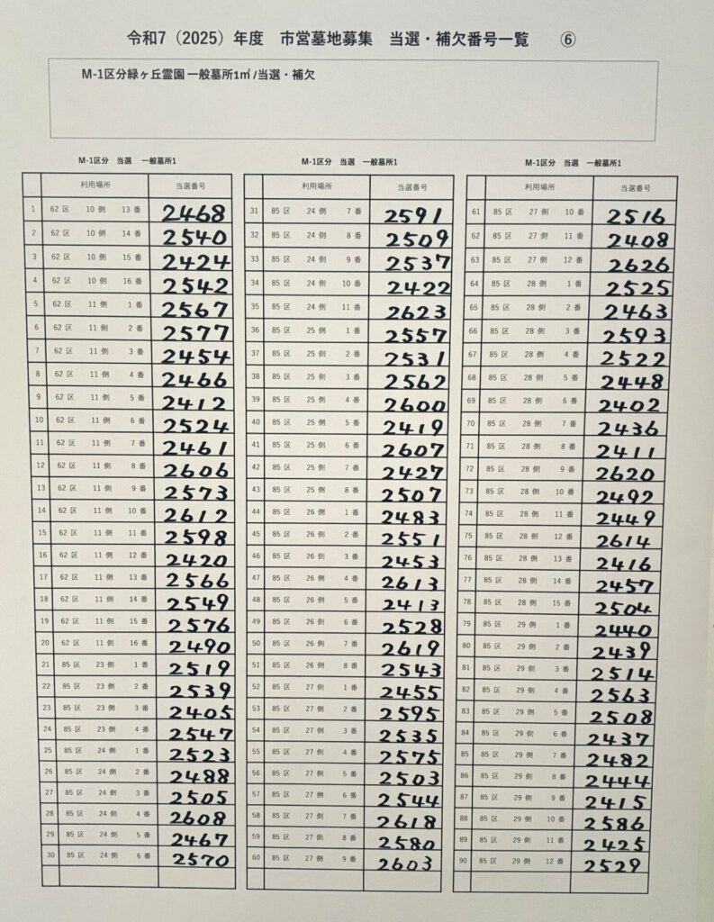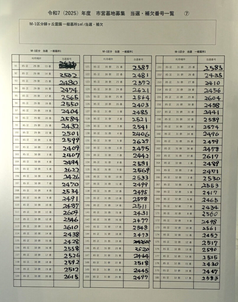 令和7年度 川崎市営墓地抽選会の結果