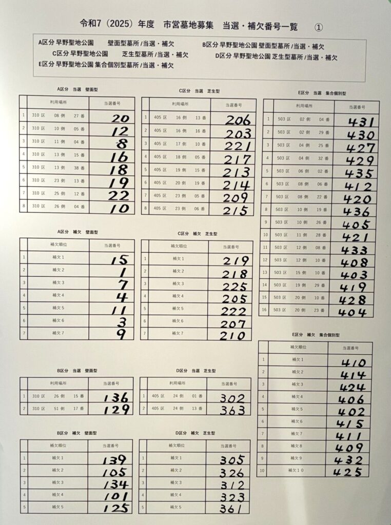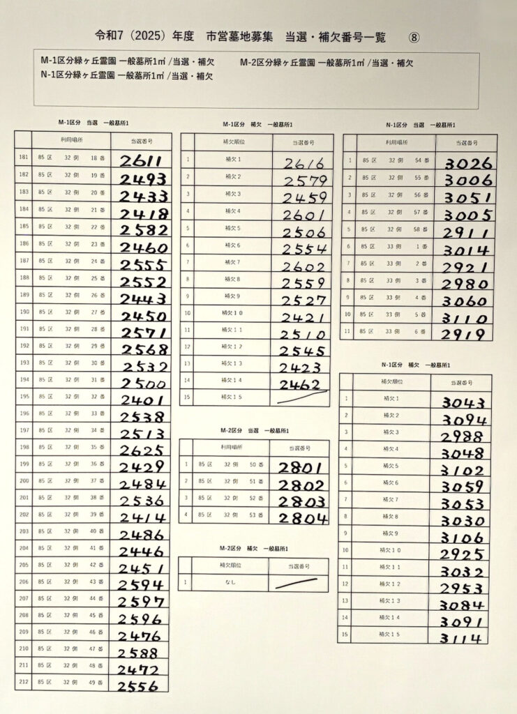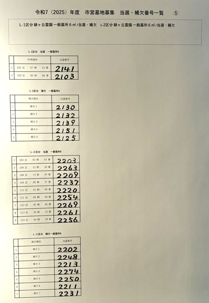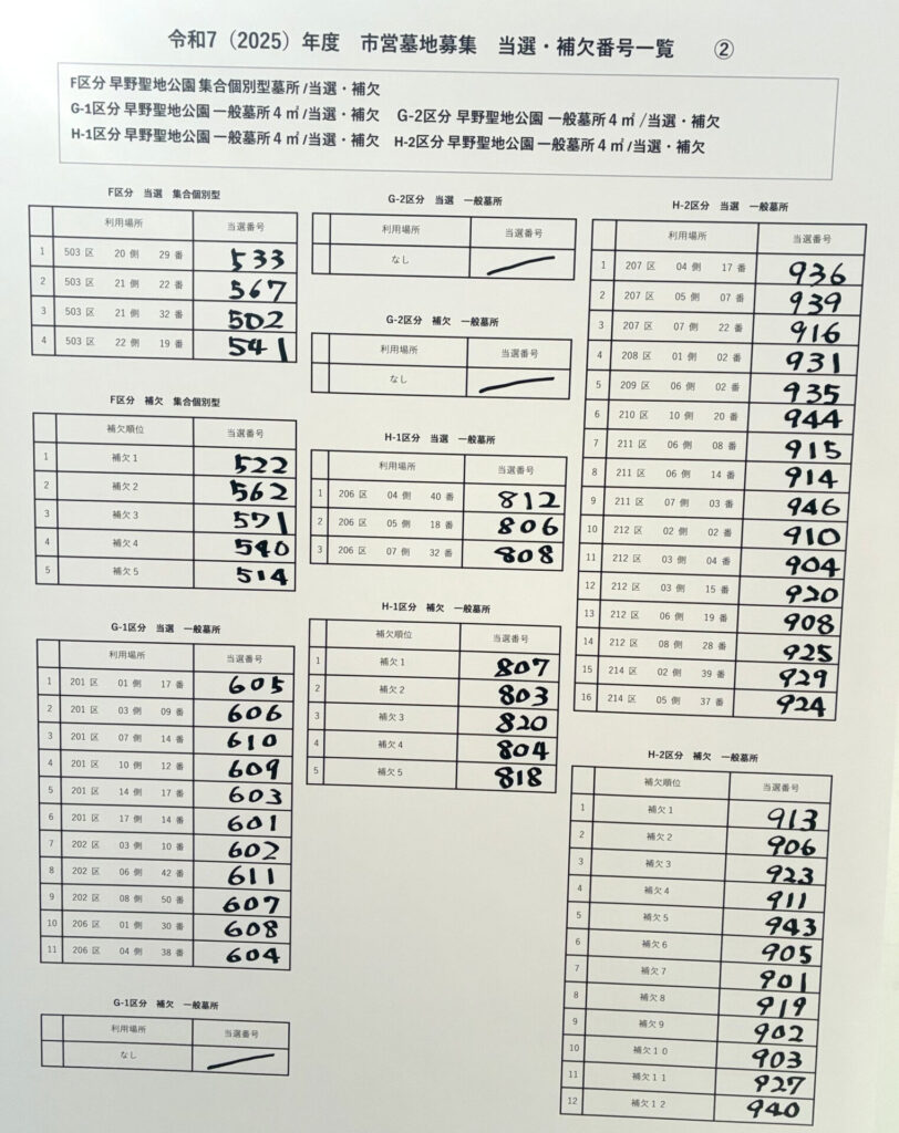 令和7年度 川崎市営墓地抽選会の結果