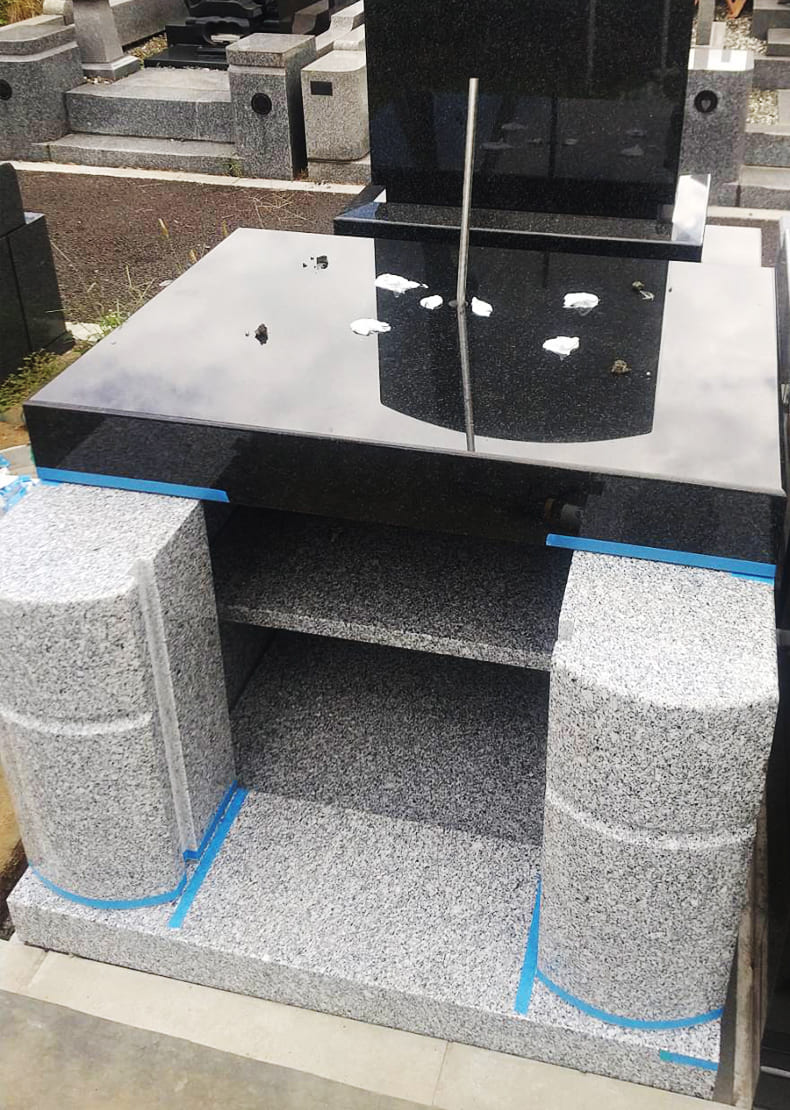 インド産 山崎石は上品な石目が人気の石種で、重量感のある墓所に仕上がりました。