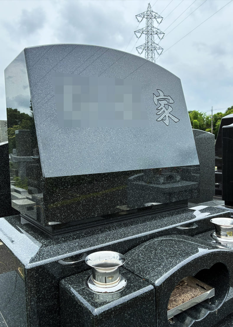 墓石デザインは洋型アーチ型で、正面の家名は深さの浅いふち彫りで彫刻しました。